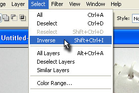Kliknite zgoraj na Select in izberite Inverse. Pritisnite tipko DEL, da pobrišete zunanji označeni del. |