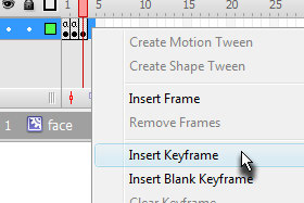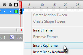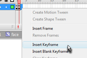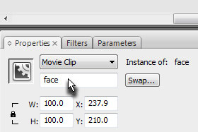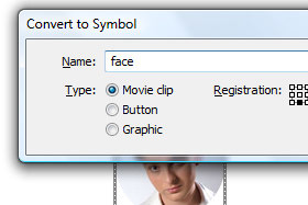 V polje Name vpišite face in Type označite Movie clip. Kliknite na gumb OK. |