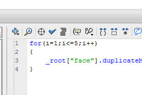for(i=1;i<=5;i++) { _root["face"].duplicateMovieClip("face"+i,i+1000,face); } Zaprite okno. |