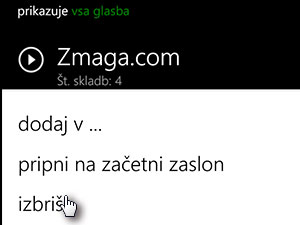Seznam predvajanja v Windows Phone |