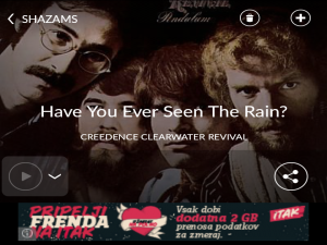 ![]() Kakšnih 5 sekund traja, da program pesem zazna. Če vam ne zazna v prvo, poskusite še enkrat. V mojem primeru je program zaznal pravilno. Pesem Have you ever seen the rain? od skupine Creedence Clearwater Revival.