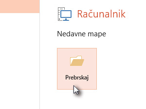 ![]() V novem oknu kliknite na gumb Prebrskaj. Če imate starejšo različico PowerPointa, potem ta korak preskočite. |