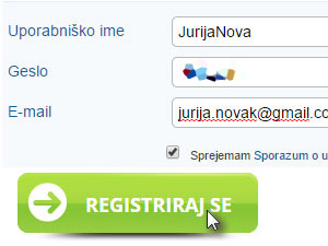 ![]() Na novi strani določite uporabniško ime, geslo ter e-poštni naslov. Kliknite na REGISTIRAJ SE in to je to. |