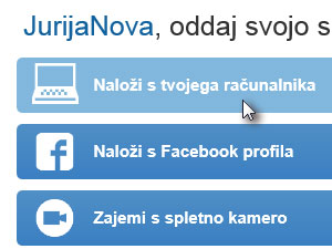 ![]() Ko boste kliknite na potrditev registracije, si najprej naložite neko svojo fotografijo, saj boste drugače skorajda neopazni. Kliknite na Naloži s tvojega računalnika. Lahko uporabite tudi sliko iz Facebooka ali s pomočjo spletne kamere. |