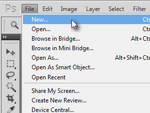 ![]() Najprej izberite nov dokument. Velikost dokumenta izberite poljubno. |
