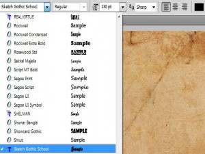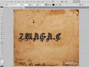 ![]() Jaz sem izbral pisavo Sketch Gothic School, v velikosti 130pt ter črno barvo. Še več pisav lahko najdete na http://www.dafont.com/,pod kategorijo Gothic in nato Medieval. |