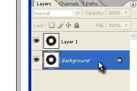 Pritisnite tipko G, da izberete orodje Paint Bucket Tool in kliknite v narisan krog, da ga pobarvate. Pritisnite tipki CTRL + D, da izbrišete selekcijo. |