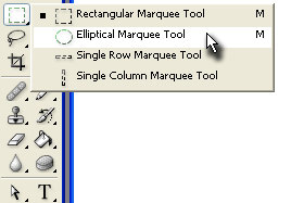 Držite z miško na orodju Rectangular Marquee Tool (bližnjica je tipka M), da se prikažejo ostala orodja. |