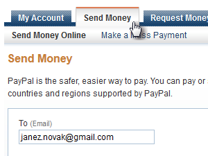 ![]() Sedaj lahko nadaljujete z uporabo PayPal. Tako lahko s klikom na Send Money denar nakažete neki drugi osebi, ki ima PayPal račun. V večini primerov pa boste verjetno PayPal uporabljali za nakupovanje preko interneta, kot je opisano v spodnji lekciji: |