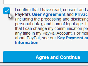 ![]() Sedaj še označite kljukico, da se strinjate s pogoji poslovanja in kliknite gumb Agree and Continue. |