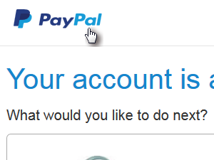 ![]() S tem ste postopek registracije zaključili. Zgoraj kliknite ikono PayPal, da boste odprli vaš novo ustvarjeni račun, ki ste ga pravkar registrirali. |