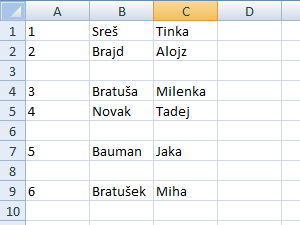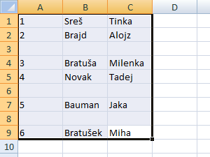 ![]() In že vidimo, da nam je Excel samo pobrisal prazne vrstice. |