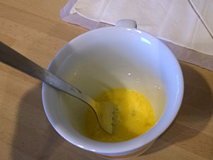 Vzemite jajce, ga razbijte in dobro premešajte v nekem loncu. Potrebovali ga bomo malo kasneje.