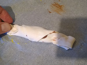 Sedaj trikotnik počasni začnite navijati iz širšega proti ožjemu delu. |