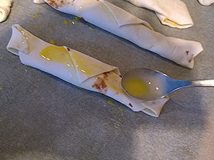 Sedaj z jajcem premažite še zgornje dele zavihkov. |