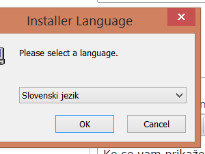 ![]() Ko se vam prikaže okno, ki vas sprašuje, ali želite zagnati program kot skrbnik, pritisnite Da. Izberite slovenski jezik in pritisnite OK. |