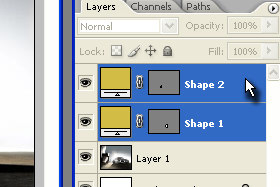 Potem pa v paleti layerjev označite oba Shape layerja (glej sliko).