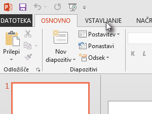 ![]() Odprite PowerPoint in kliknite na zavihek Vstavljanje. |