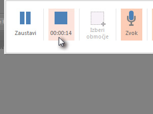 ![]() Snemanje lahko prekinete tudi tako, da se z miško premaknete na vrh in kliknete na gumb za ustavitev. |