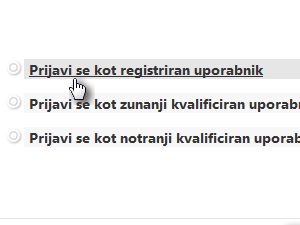 Na strani izberite povezavo Prijavi se kot registriran uporabnik.