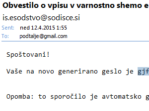 ![]() V elektronski predal boste prejeli e-sporočilo, v katerem najdete tudi geslo za prijavo. |