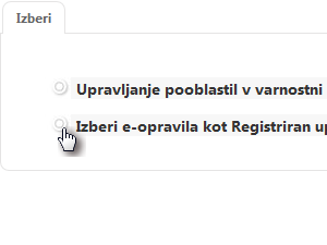 ![]() Po prijavi izberite možnost Izberi e-opravila kot Registriran uporabnik. |