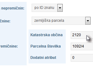 ![]() Prikazal se bo obrazec v katerega morate vpisati: - Katastrsko občino - Parcelno številko