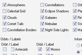 Pod tipko "Render --> View Options" lahko najdete vse kar se tiče orbit, imen posameznih predmetov v vesolju itd. |