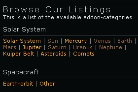 in iz nje potegnite dodatke oz. tako imenovane add-ons. Na strani najdete vse od velikih razločnih tekstur planetov do SciFi scen kot so Starwars, Star Gate itd... Vsa navodila za nalaganje dodatkov dobite zraven ko ga povlecete. OBILO UŽITKOV!! |