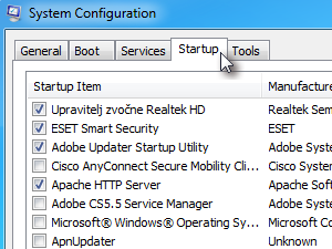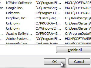 ![]() Izpisal se bo seznam programov, ki se avtomatsko zaženejo ob zagonu sistema.