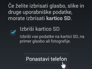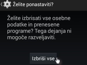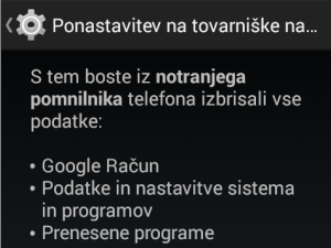 Če se vaš telefon obnaša nepredvidljivo oz. je začel delovati počasi, potem ga lahko povrnete v stanje, kot je bil ob nakupu in sicer tako, da ga nastavite nazaj na tovarniške nastavitve.