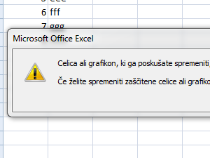 ![]() Če bo sedaj nekdo poskušal spreminjati vrednost zaklenjenih celic, bo dobil obvestilo, da spreminanje ni možno. |