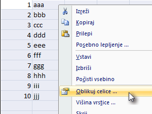 ![]() Nato z desnim miškinim gumbom kliknite na tabelo in izberite možnost Oblikuj celice. |