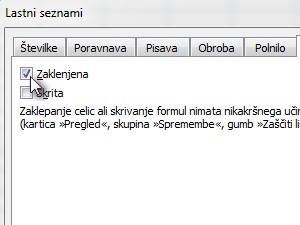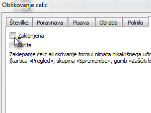![]() Kliknite na celice z desnim miškinim gumbom, izberite možnost Oblikuj celice in pri obkljukajte možnost Zaklenjena. |