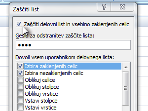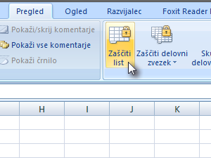 ![]() Da bodo celice dejansko zaklenjene, moramo sedaj samo še zaščititi list.