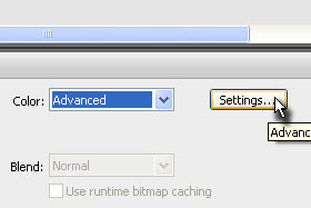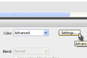 Spodaj v oknu Properties polje Color preko izbirnika določite Advanced in potem kliknite na gumb Settings... |