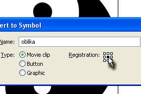 Pritisnite tipko F8 in v polje Name vpišite oblika in označite Movie clip.