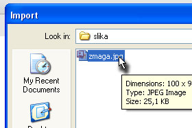 Označite slikovno datoteko in kliknite na gumb Open. |