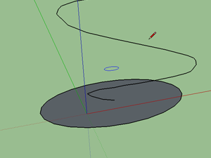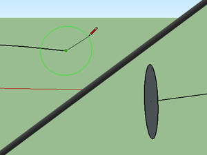 ![]() S tem orodjem moramo ustvariti krog, katerega središče se bo dotikalo črte, ki smo jo ravnokar narisali. Paziti moramo, da ustvarimo krog pravokotno na črto, saj v nasprotnem primeru stvar ne bo delovala. <--- PRAVILNO To dosežemo tako, da na črto ne gledamo iz višine, ampak kamero obrnemo tako, da bo gledala pravokotno na črto. |