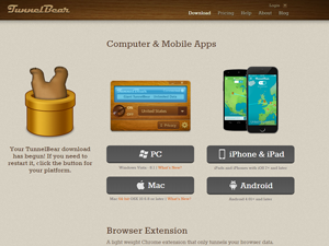 Najprej moramo naložiti program TunnelBear, ki nam bo omogočil, da bomo Spotify "pretentali" in bo mislil, da smo v neki drugi državi, kjer je Spotify dovoljen.