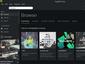 ![]() In sedaj lahko začnete uporabljati Spotify. Omogoča vam, da poiščete skladbe, jih poslušate, dodate na seznam predvajanja, poslušate najbolj popularne skladbe... Ko se Spotify odpre in enkrat deluje, lahko ugasnete in zaprete program TunnelBear. |