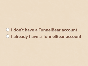![]() Ko se bo program odprl, vas bo vprašal ali že imate račun za program TunnelBear. Verjetno ga nimate, zato izberite zgornjo možnost in se registrirajte. Če že imate račun, izberite spodnjo možnost in se samo prijavite. |