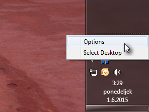 ![]() Po zagonu programa se bo zraven ure pojavila ikona, ki označuje, da je program za upravljanje več namizij zagnan. |