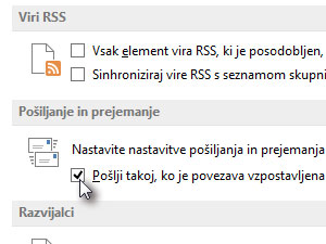 ![]() Nato pa na desni strani poiščite možnost Pošlji takoj, ko je povezava vzpostavljena. |