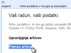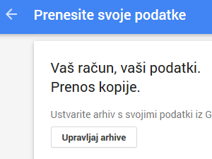 Če želite shraniti na svoj računalnik vso svojo pošto, koledar, slike, kontakte, dokumente in druge stvari, ki so vezane na Google račun, potem lahko to enostavno storite tako, da prensete celoten arhiv.