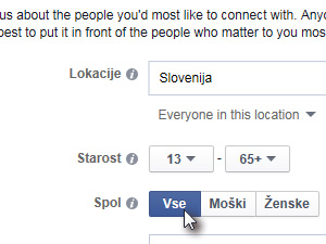 ![]() Na naslednji strani nastavite vašo lokacijo in starost ter spol obiskovalcev, ki jih želite privabiti. |