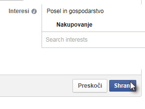 ![]() Spodaj nastavite še intereste in kliknite na gumb Shrani. Interesov lahko nastavite več, če želite. |