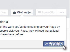 ![]() Na koncu lahko kot prvi uporabnik všečkate stran. To pomeni, da boste na prvi Facebook strani videli vse novosti, ki se bodo objavile na strani. |