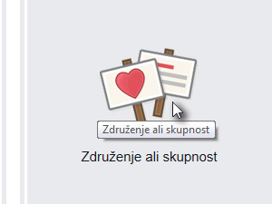 ![]() Prikaže se stran, kjer kliknete na želeno kategorijo. Jaz bom ustvaril Združenje in skupnost, kjer bom predstavljal svoje domače izdelke. |