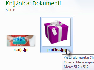 ![]() V oknu raziskovalca označite na željeno sliko in potrdite. |